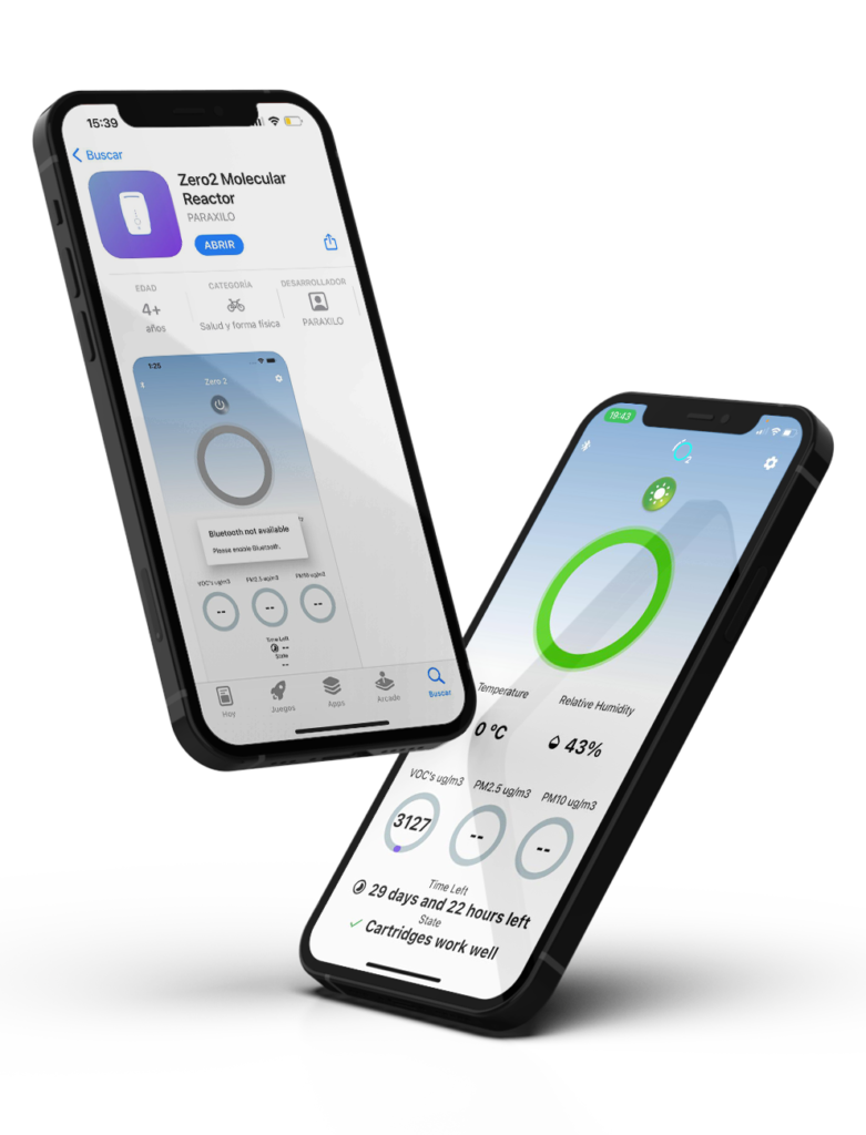 io2 permite poder disfrutar del aire y las superficies libres de virus, bacterias, malos olores, gases tóxicos, así como de partículas de contaminación (COVs), de manera continua, 24h/7d